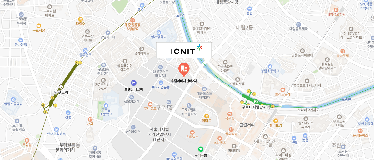 구로디지털단지역 3번출구(도보로 10분)대림역방향 도보로 300M - 횡단보도 건너 현대APT앞에서 좌회전 - 100M 지점 우측 건물