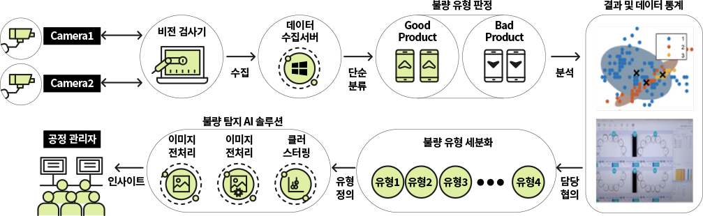 단순 합/불 판정으로 수집된 공정 이미지 데이터로부터 특징별 군집화를 통해 군집별 유형을 추출해 공정 담당자와