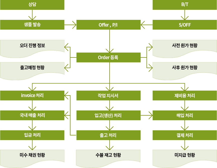 제직/편직 생산 수불관리, 정산 관리섬유 원단, 봉제 컨버터, 트레이딩